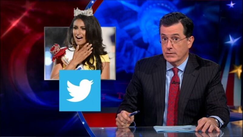 In case you missed last night's show, Colbert summed up the argument against Davuluri in a single sentence: "705 people [who tweeted the phrase "Miss America Terrorist"] saw a woman in a bikini and thought, 'Muslim Extremist.'"
