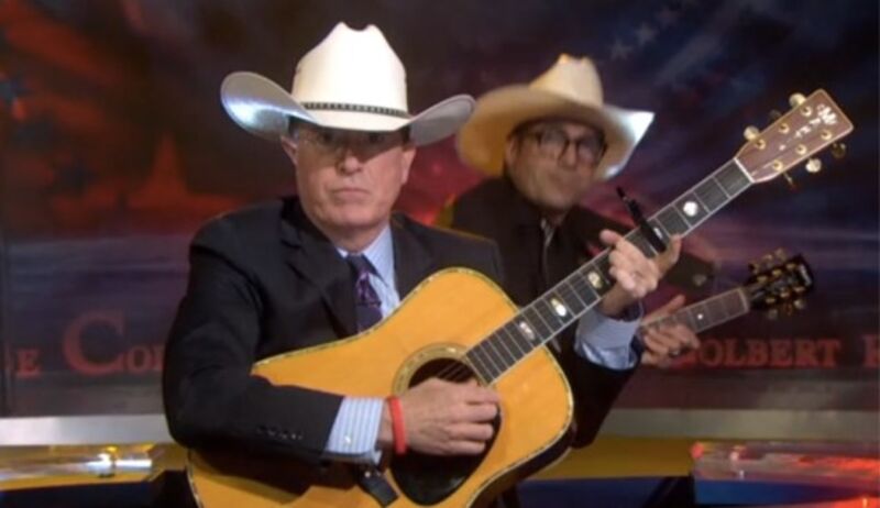 Stephen Colbert, jealous that Sean Hannity beat him to the punch in befriending anti-government, pro-slavery rancher Cliven Bundy, decided to jump on the bandwagon by giving the conservative "folk hero" his own folk song.