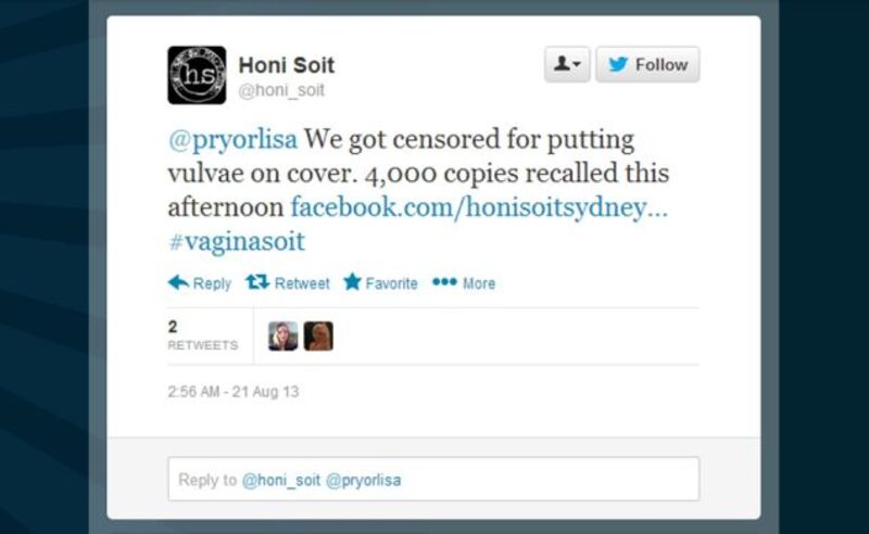 Honi Soit thought it could work around the ban by placing black bars on the vulvae, but they were ultimately deemed "too sheer," and the paper was pulled from shelves and ordered to be pulped.