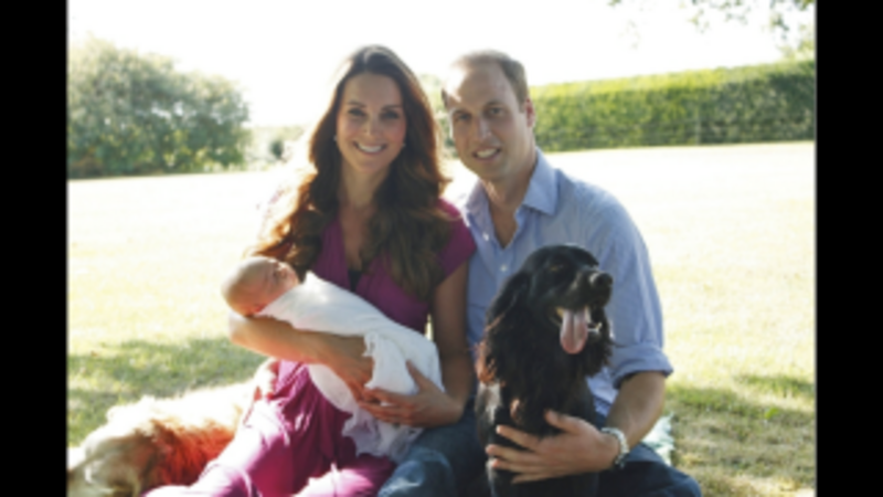 In one of the shots, a beautiful flowy-haired Cocker Spaniel smiles with serene vacancy, as though she has recently grasped an injured woodcock in her powerful jaws and shaken it by its feathered neck until dead. Only as the bird's lifeless body fell slack, clenched between her gleaming white teeth, did finally understand what is meant by the human term "inner peace." She's holding Prince George; Prince William and the family dog Lupo are there too.