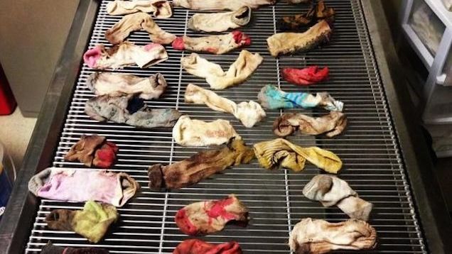 "We opened up his stomach and kept removing sock after sock of all different shapes and sizes," Dr. Ashley Magee at DoveLewis Animal Hospital told KGW. It's unclear what happened to the other half a sock.