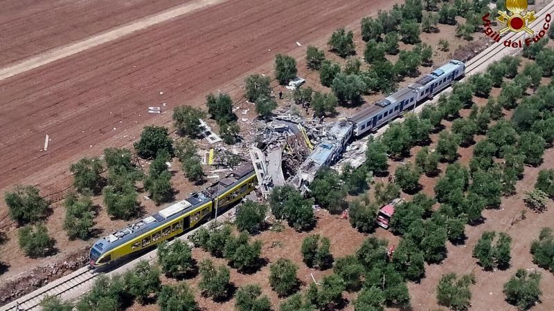 On Tuesday, two commuter trains collided head-on in an olive grove in Italy’s southern region of Puglia, killing a dozen people and injuring dozens more, firefighters said.