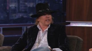 It only took W. Axl Rose 20 years to show up for last night's live televised interview on Jimmy Kimmel Live, which seems about right after the decade the Guns N' Roses lizard required to record Chinese Democracy. Axl's extreme tardiness was apparently the only one of his million idiosyncrasies Kimmel was allowed to…