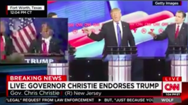 Washington Post reporter Paul Farhi tweeted today that cables belonging to both MSNBC and CNN were tampered with today at the Donald Trump-Chris Christie rally in Fort Worth, Texas.