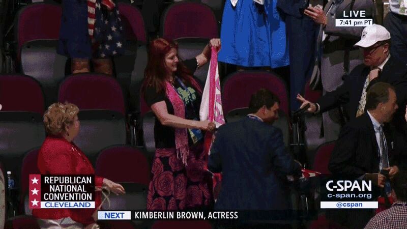 CLEVELAND — Code Pink co-director Alli McCracken made headlines when, on the first night of the Republican National Convention, she stood up and unfurled a banner.
