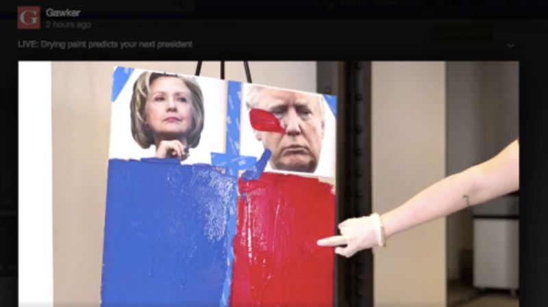 It has come to the attention of the editors of Gawker.com that during today’s Facebook Live simulation of the presidential election, senior writer Ashley Feinberg manipulated results to make it appear that paint representing Hillary Clinton dried faster than paint representing Donald Trump.