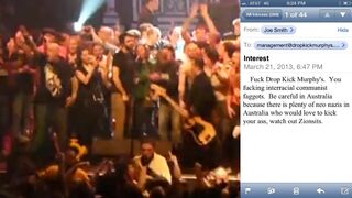 After Dropkick Murphys bass player/singer Ken Casey made it abundantly clear that neo-Nazis are "not fucking welcome" at his band's concerts, the neo-Nazis are apparently responding in kind.