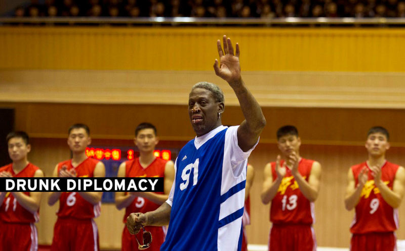 The world scratched its head yesterday when it learned that former Chicago Bulls star Dennis Rodman is in North Korea, spreading a message of world peace via extreme facial piercings and basketball just days after North Korea's latest nuclear test. (And also filming an HBO documentary with the Harlem Globetrotters and