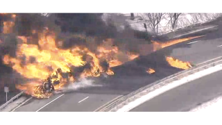Overturned Tanker Truck Bursts Into Flames on New Jersey Highway