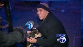 After being alerted by a reporter for WABC's Eyewitness News to the peril of a shivering pooch that had apparently been stranded outside by its owner on a bitterly cold night in Newark, Mayor Cory Booker responded by heading out into the cold to personally rescue the chilly dog from certain doom.