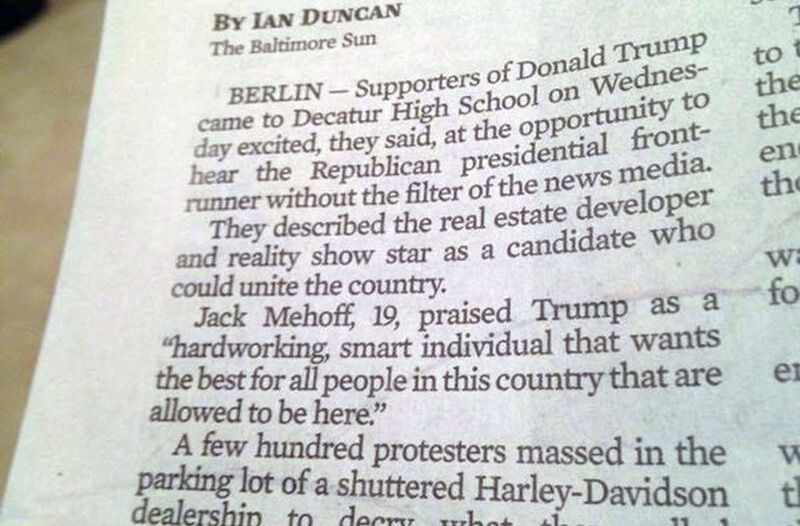Jack Mehoff Endorses Donald TrumpHudson Hongo4/21/16 7:30pm16024EditPromoteDismissUndismissHideGo to permalinkAccording to The Baltimore Sun, the 19-year-old hand stuff solicitor described Trump as “hardworking.”
