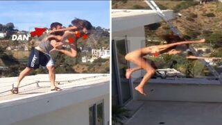 Dan Bilzerian, the king of Instagram, is known for a few things: playing high-stakes poker, buying his way into film roles, and posting photos of guns, cars, and women. On Thursday, he threw one of those women off a roof, aiming for a swimming pool. It didn't work out.