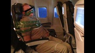 In new footage of the now-infamous hog-tying of an inebriated Icelandair passenger, passengers can be seen covering the man's mouth with several layers of duct tape, to no avail.