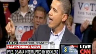 Moments ago, President Obama's Connecticut rally was interrupted by activists looking for more global AIDS funding. Obama reacted by telling them that "the other side" doesn't fund them (not true) and suggested they interrupt Republican rallies (classy!). Watch inside.