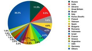 According to Kapersky Labs' monthly spam report, Russia became the number one source of spam emails in October for the first time ever, more than doubling its September output. The U.S. is #18 in the global p3nis enlargement industry. Yay!