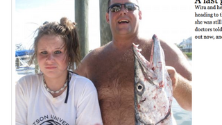 Traumatic Barracuda Injury Turned Into Hilarious Photo-OpMax Read7/30/10 2:48am96EditPromoteDismissUndismissHideGo to permalinkAfter being bitten by a barracuda while on a fishing trip, 14-year-old Koral Wira needed 51 stitches. But first she had to pose for a classic family photo with her father and the 42-inch fish. (She's okay now.) [F&S; Fark]