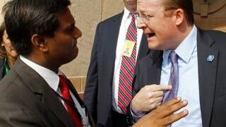 White House press secretary Robert Gibbs threatened to call off negotiations with Indian Prime Minister Manmohan Singh today after three U.S. reporters were barred from covering the meeting. "Angry words" were shared, but Indian officials finally relented. Image via AP.