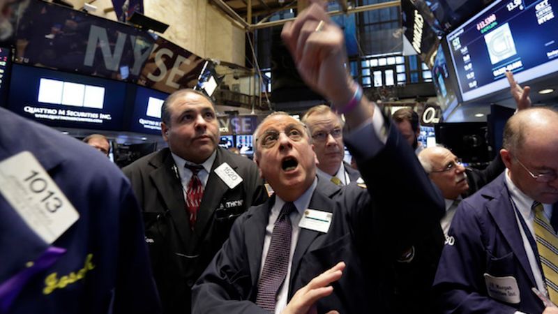 No photos of sad traders today: The Dow posted its biggest one-day jump in history, rising nearly 1,000 points after the central banks pumped billions into the system and various European countries announced plans to guarantee loans and prop up ailing banks. More photos of cheery traders after the jump. [NYT, WSJ]