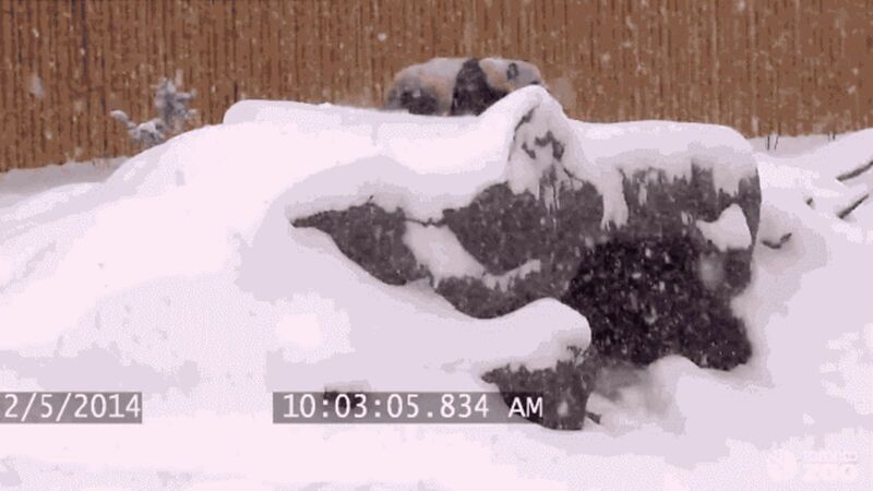 What is with panda bears falling on their faces? Earlier this week, Da Mao, a giant panda bear at the Toronto Zoo, tried to walk through a snowstorm. It didn't go so well, and he ended up falling off a giant rock onto his face. Stupid bear.