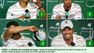 People had body language expert Patti Woods (no relation!) analyze Tiger's every move, sip and swipe at his big pre-Masters press conference today. Here is what she said. (Click to enlarge.) [People]