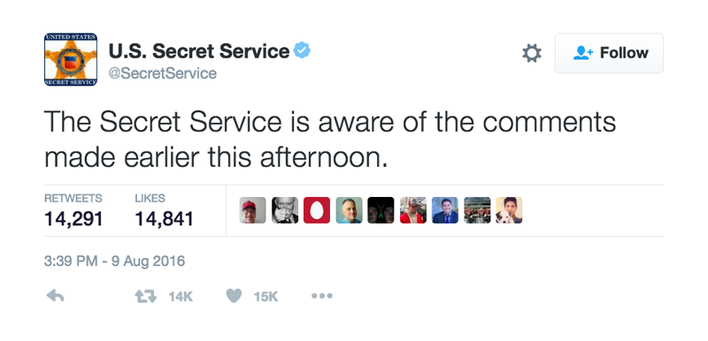 The Secret Service knows about “the comments.” The Secret Service has heard your comments about “the comments.” But the Secret Service will not be commenting on “the comments” at this time.