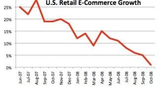 The accompanying chart from TechFlash says it all: Online sales just aren't growing anymore. October's 1 percent growth over October 2007 is the worst performance measured by ComScore since they began tracking stats in 2001. TechFlash quotes Gian Fulgoni, chairman of the research firm: "We can only hope that the…