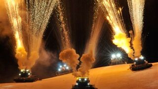 [Fireworks are launched from bulldozers in the opening night of the Villar Night Show, a tourist attraction at a ski resort in Switzerland. Image via AP Photo/Keystone/Laurent Gillieron)]