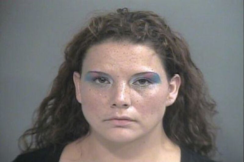 The above mugshot belongs to Brandy Allen, 31, an Arkansas woman arrested on Labor Day for allegedly stealing $144 worth of eye makeup from a mall cosmetics store. Fayetteville police say she grabbed "handfuls of makeup without looking at the color or labels. She didn't appear to be checking prices, either."