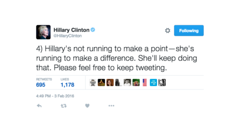 For a while this afternoon, the people running the respective social media accounts of Hillary Clinton and Bernie sanders tweeted some things about each other’s candidate of choice. A small number of people saw them and were amused or irritated, but most people didn’t. None of it will make any difference on February…