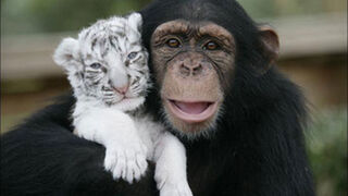 Don't be lulled by the hypnotic cuteness of these photos of Anjana the chimpanzee and her baby white tiger friends Mitra and Shiva at The Institute of Greatly Endangered and Rare Species in South Carolina. When the chimps start raising tigers, we're only a few years away from total world domination by our simian…