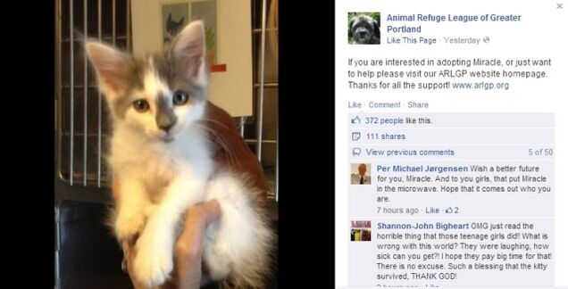 Nicknamed "Miracle," the 8-week-old kitten will soon be up for adoption.