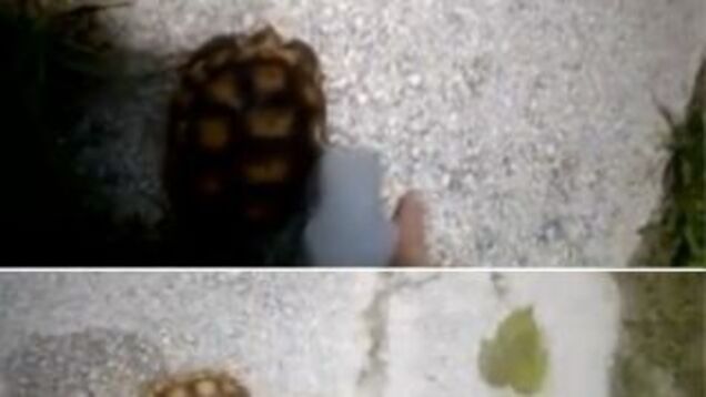 "Let's do it again," the videographer said. "Let me do it. He's not dead. He just went in his shell."