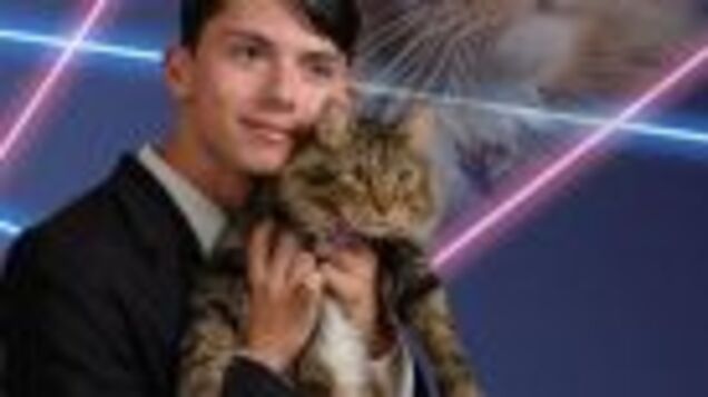 Draven Rodriguez, a student at Schenectady High School in upstate New York, has a dream for his senior yearbook: that it will include this professional photo of him and his cat, Mr. Bigglesworth, and lasers. "I'm not trying to make any statement," Rodriguez told The Daily Gazette, "other than my photo is ridiculous and this is how I am."
