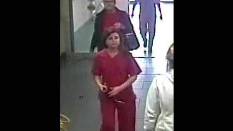 Security cameras caught the fake nurse driving away in a Toyota Yaris with a "Baby On Board" sign.