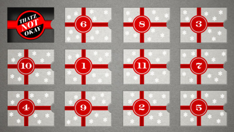 Welcome to The 12 Days of Thatz Not Okay, a special holiday edition of a regular column in which I school inquiring readers on what is and is not okay. Check back tomorrow for our next seasonal installment. As always, please send your questions (max: 200 words) to caity.weaver@gawker.com with the subject "Thatz Not Okay."