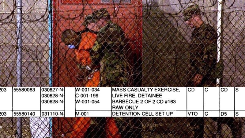 The recordings are undated, though a recording of the construction of Guantanamo Bay’s Camp Delta installation shows that the collection stretches back to at least 2002. Many of the recordings are generically titled, with descriptions like “DETAINEE TRANSFER” and “CAMP DELTA ACTIVITIES”: