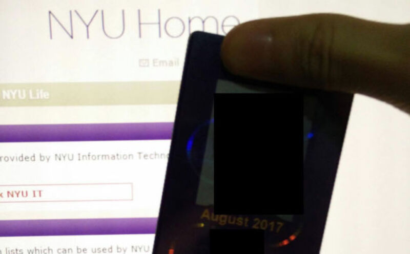 Then, the admin sent a photograph of what appears to be a current NYU student ID card—black boxes covering the name and photograph—held in front of what he described as the NYU student portal. The browser appeared to be logged in.