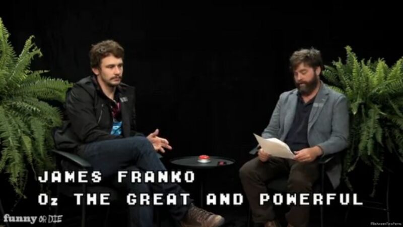 What starts out as a "normal, everyday, run of the mill" interview with Oz the Great and Powerful star James Franco on the latest episode of Between Two Ferns With Zach Galifianakis — "of all the art projects that you've done, what has made people roll their eyes the hardest?" — turns out to be a backdoor intro for the new Lonely Island music video, "Spring Break," guest starring Edward Norton.