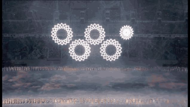 It took less than ten minutes of the 2014 Winter Olympics Opening Ceremony to witness the latest in a long line of Sochi screwups. The final ring in the sequence failed to open out from a snowflake, giving us this sad abortion of an Olympic symbol. Here's video: