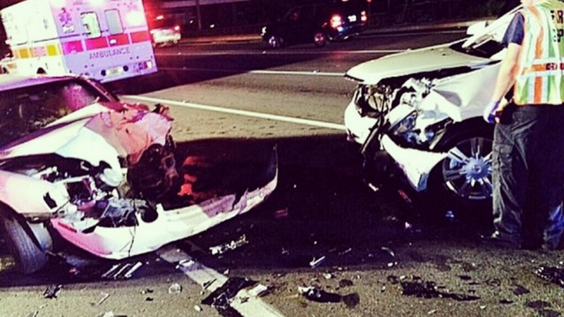 This afternoon, the Fast & Furious star shared news that his mother, Ata Johnson, and cousin, WWE NXT Diva Lina Fanene, were hit head-on by an alleged drunk driver earlier this week. The good news is that they both survived, but the photo he shared on his Instagram account of the scene—two wrecked cars and an ambulance with its emergency lights on—should scare you sober.