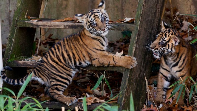 [Sumatran tiger cub Bandar continued to charm the camera during his public debut at the National Zoo in Washington on Monday. His less-photogenic sister, Sukacita, was also introduced to the public. Photo by Jacquelyn Martin via AP]