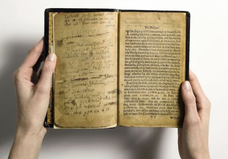 [This tiny, crappy book of psalms from 1640, believed to be the first book printed in what's now the United States, sold for $14.2 million at auction Tuesday night, setting an auction record for a printed book. Image by Sotheby's via AP]