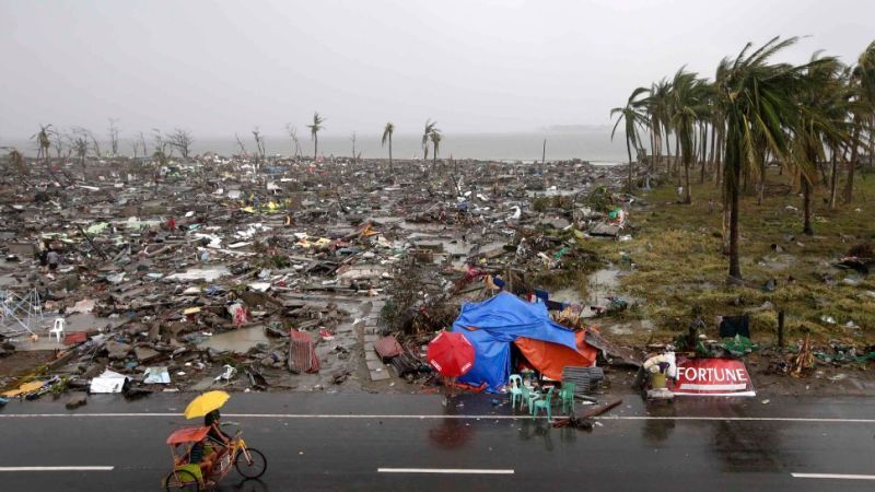 Around 10,000 people are believed dead in the aftermath of the typhoon, which leveled whole towns. [image via Getty]