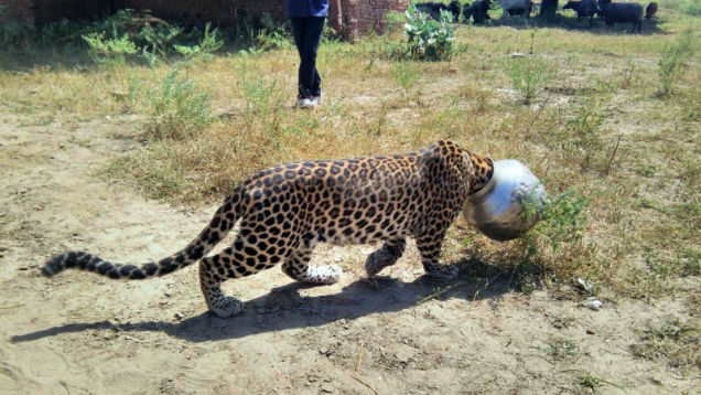 Villagers said they became aware of the leopard—usually a stealthy creature—as he ran around trying to get the pot off his head. Villagers speculated that the leopard had come from the Kumbhalgarh sanctuary, 12 miles away.