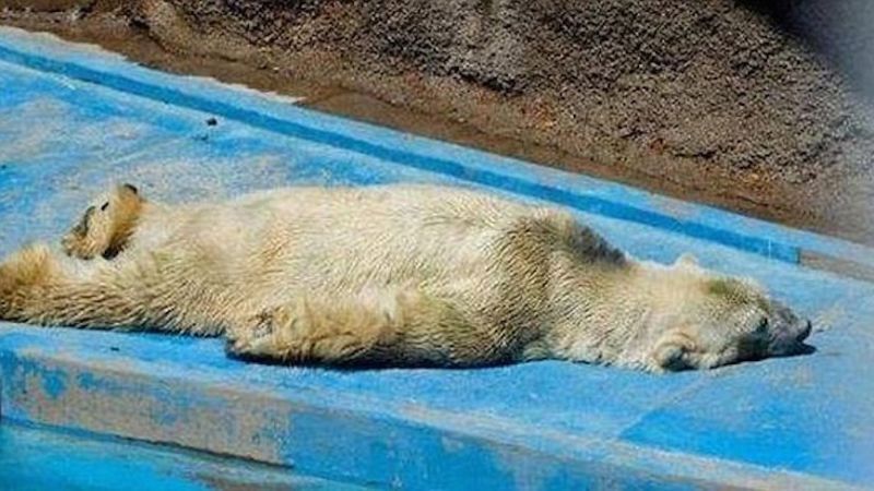 A polar bear named Arturo, who lives in a hot enclosure at Mendoza Zoo in Argentina, has not been having a great two years. After his best friend Pelusa died in 2012, Arturo has responded by exhibiting strange behavior, such as rocking side to side, baring his teeth, and collapsing into a pile with no will to get up. It can reach up to 104 degrees Fahrenheit in his enclosure.