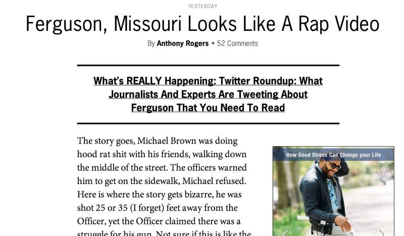 Is Thought Catalog's "Ferguson, Missouri Looks Like A Rap Video" by Anthony Rogers the dumbest thing that's been written about Michael Brown and the aftermath of his death so far? Let's investigate:
