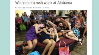 It's sorority rush week at the University of Alabama, and over 2,250 girls—the most to ever rush at Alabama or any school in the country—are currently marching from house to house, grit-smiling their way through small talk and idiotic skits in the hopes of becoming Chi Os or KDs. This is just one year after the student paper revealed that these all-white organizations purposely blocked black women from membership well into the 21st century.