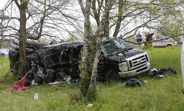 Georgia State Patrol officers told WSB-TV that the driver, who was uninjured, apparently fell asleep just after 7 a.m., causing to van veer down an embankment and crash into a tree. The accident occurred on I-85, about 65 miles northeast of Atlanta.