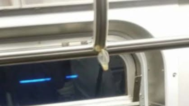 Listen: I tried to talk to you about this last week, and it just doesn't seem like I'm getting through, but I'm going to give it one more shot. That used condom—you know the one, tied to an F Train handrail, sagging under the weight of its own viscous insides—it's still fucking there.
