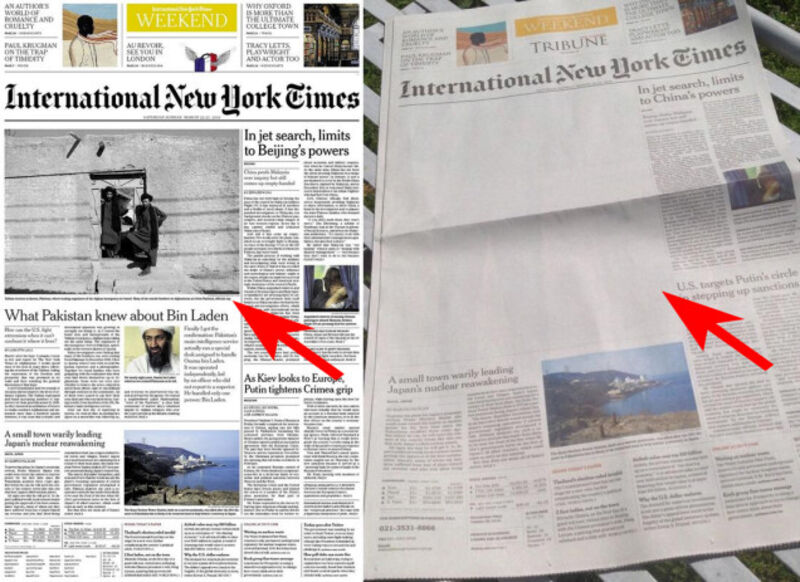 It ran on the front page of the Times' international edition published in Asia on Saturday: